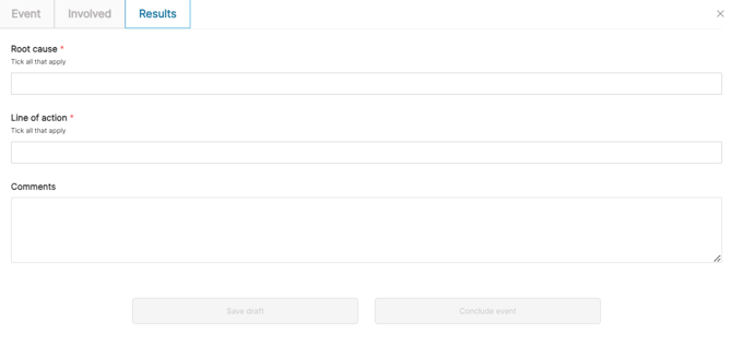 8. On the last page, you will identify the root cause and the line of action of the created event. If necessary, add observations.