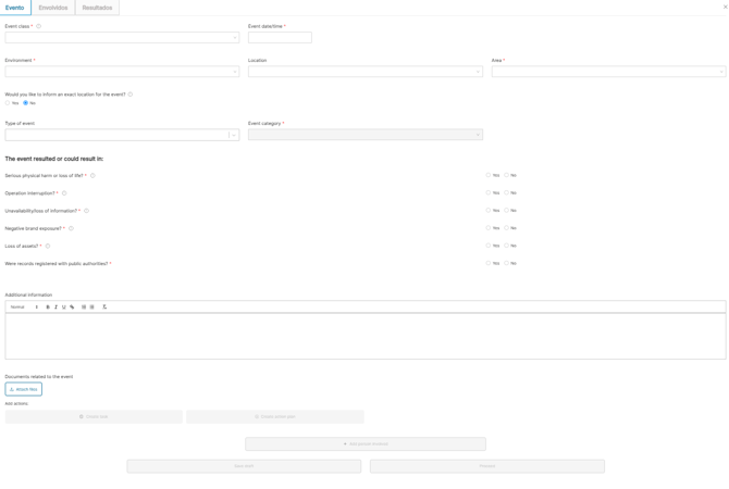 After filling in the information on the initial events page, choose whether you want to proceed, add person involved, or save the draft to finish filling it out later.