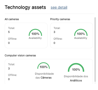 - For computer vision cameras, you will have a comparison between the total number, how many of them are offline, and the availability of analytics, that is, the functionality of computer vision alerts.