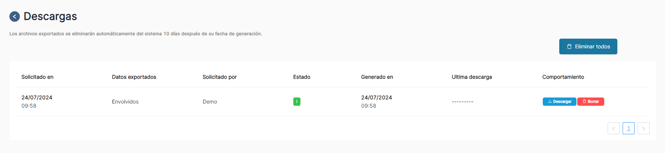 8. En el menú lateral, pasa el cursor sobre el módulo administración y haz clic en descargas.