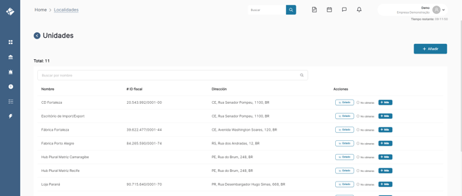 Las localidades son, de hecho, el lugar físico de la organización. En ellas registramos cámaras, eventos y realizamos análisis en general.