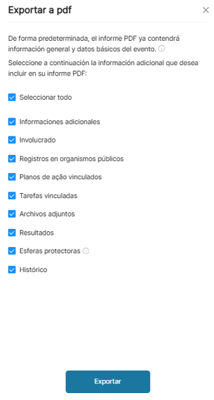 Cómo exportar un evento a PDF
