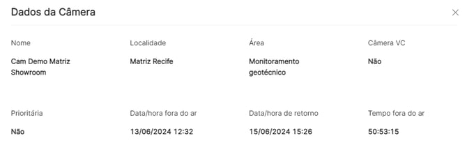 3. Haz clic en historial para identificar cuándo y cuánto tiempo la cámara estuvo fuera de servicio y cuál fue la fecha de retorno.