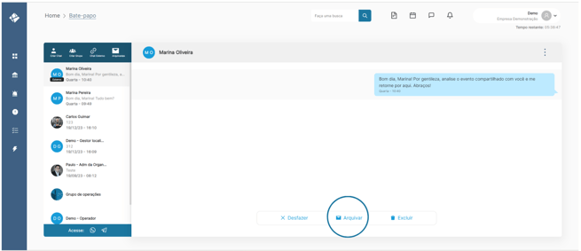 Todas essas mensagens poderão ser acessadas ao clicar no ícone arquivadas