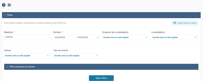 2. Escolha o tipo de relatório que deseja, adicione os filtros básicos e/ou avançados que e clique em aplicar filtros.