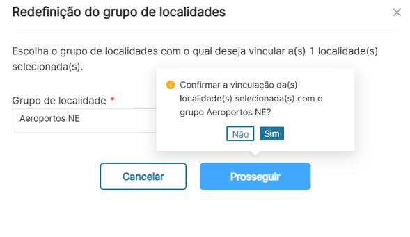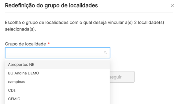 7. Selecione qual será o novo grupo de localidade das localidades selecionadas