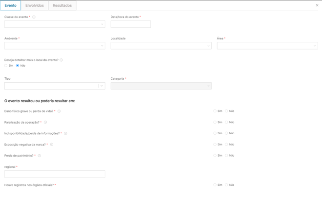 Não consigo finalizar o preenchimento no registro de eventos. O que devo fazer?