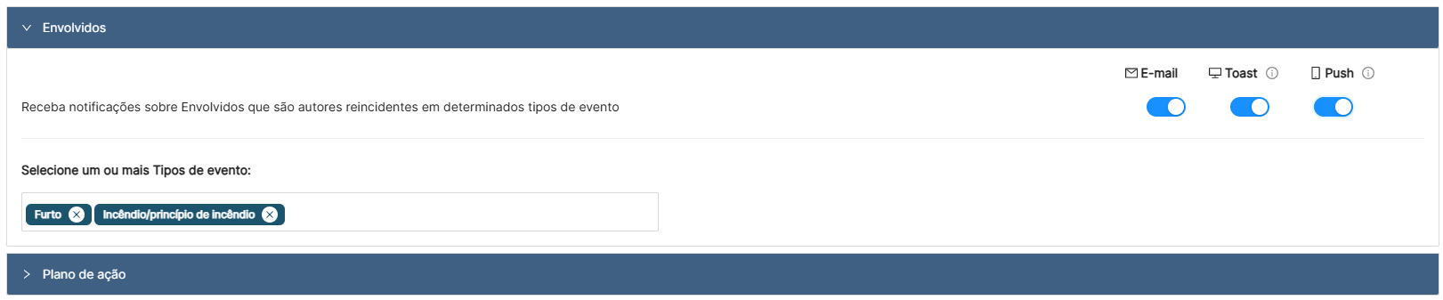 14. Para configurar notificações sobre envolvidos autores reincidentes, clique sobre o ícone > Envolvidos