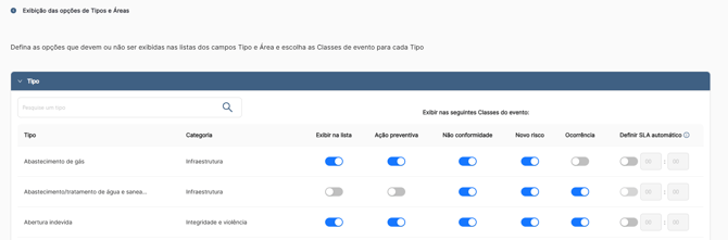 4. Defina um SLA automático para cada tipo de evento que desejar