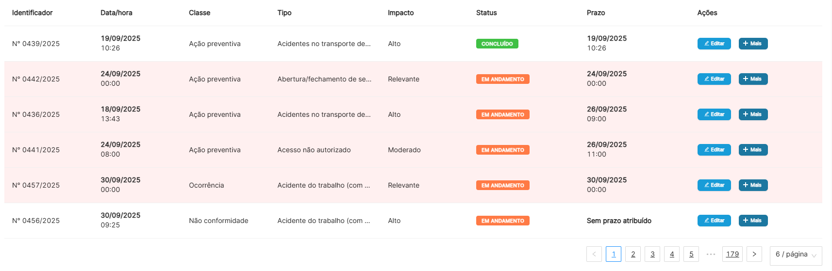 2. Os eventos que tiverem um prazo definido aparecerão em amarelo (72 duas horas anteriores ao vencimento) e em vermelho (atrasados).