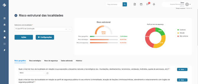 Em Risco Estrutural, dependendo da sua permissão, você terá acesso as localidades que faz parte e seu risco estrutural médio, que está balizada nos seguintes itens: