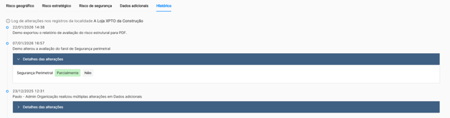 Risco Geográfico: Risco ambiental, baseada em eventos naturais, e de segurança pública, baseada na segurança pública da região em que a localidade está situada